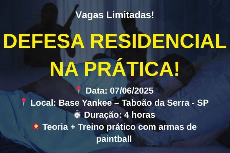 Está aberta a inscrição para o Curso de Defesa Residencial na Prática, uma formação presencial completa voltada para quem deseja aprender a proteger sua casa e sua família com responsabilidade e preparo técnico — utilizando tanto armas de pressão quanto armas de fogo.