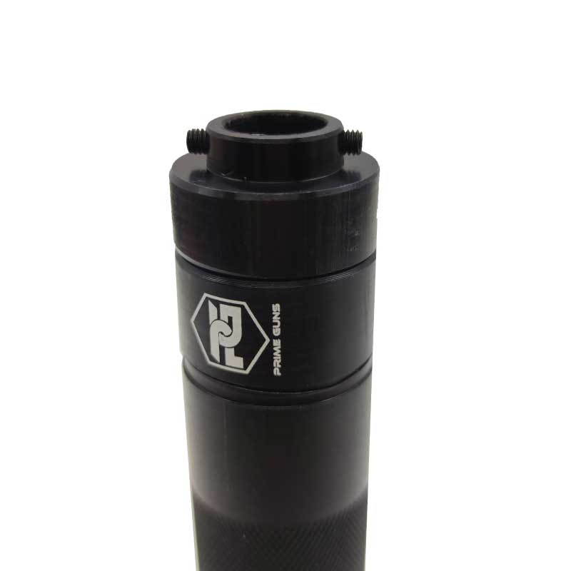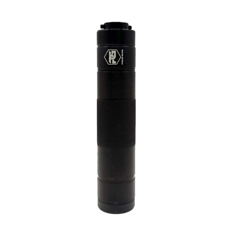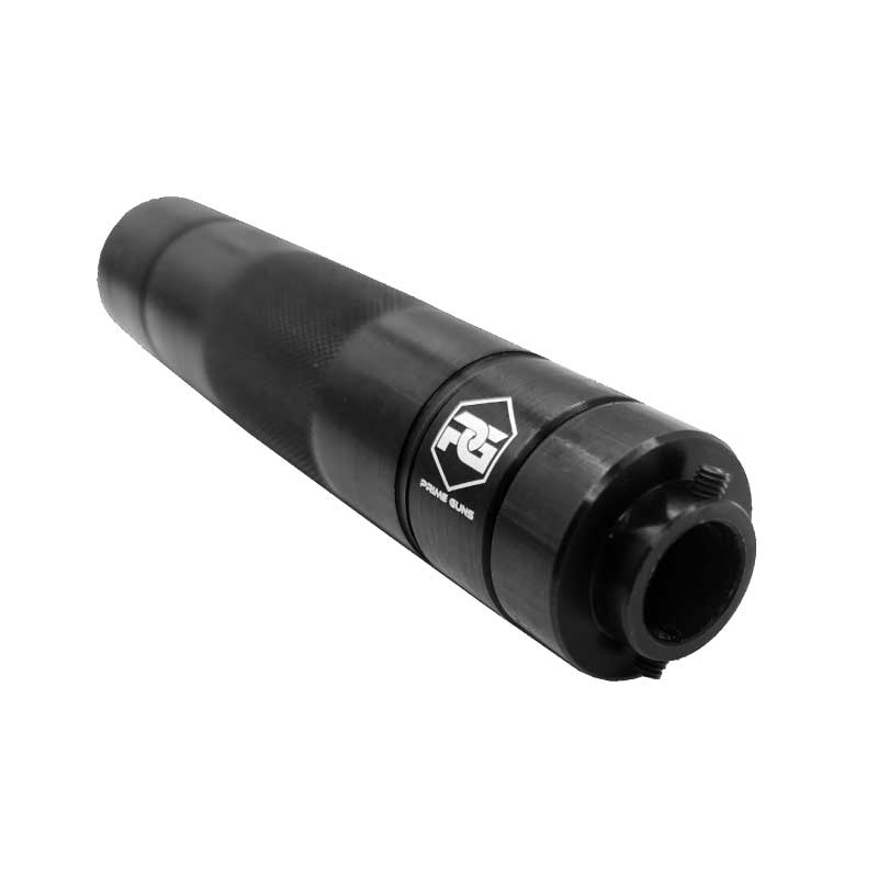 O supressor fake Prime Guns é fabricado em alumínio anodizado em preto, com ótimo acabamento e peso equilibrado. Possui 15cm de comprimento e 3cm de diâmetro, ficando bastante confortável em diversas pistolas, sem cobrir por completo a alça e massa de mira.