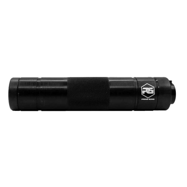 O supressor fake Prime Guns é fabricado em alumínio anodizado em preto, com ótimo acabamento e peso equilibrado. Possui 15cm de comprimento e 3cm de diâmetro, ficando bastante confortável em diversas pistolas, sem cobrir por completo a alça e massa de mira.